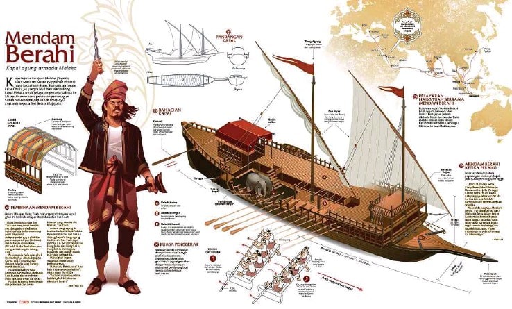 Anda boleh bayangkan seluas mana kapal Mendam Berahi yang gah ini ditambahkan lagi ianya diketuai ‘Hulubalang’ termasyur Melaka yakni Dato Laksamana Hang Tuah setiap kali ia berlayar menyusuri lautan.