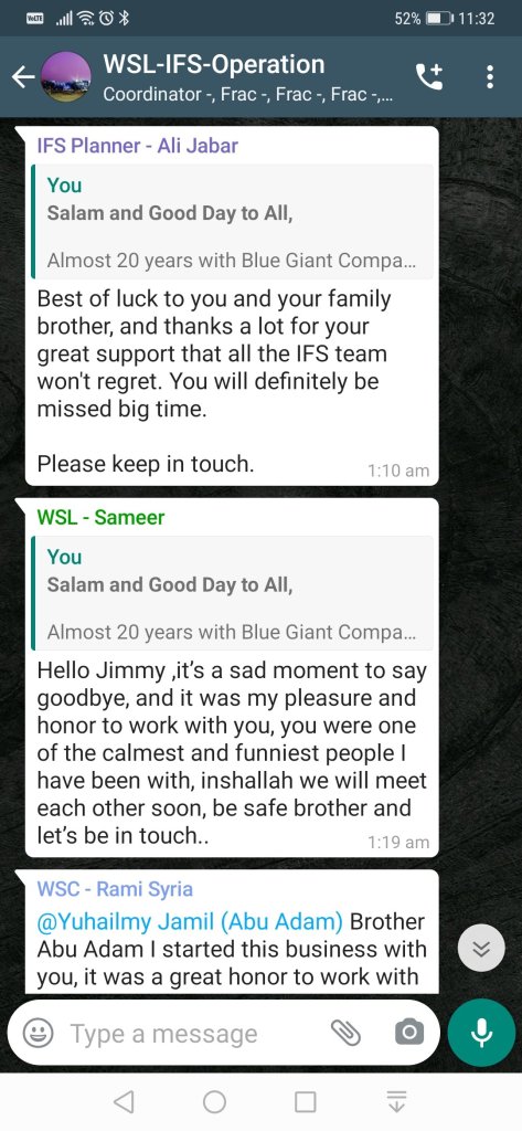 I want to take this opportunity to thanks everyone that supported me over my career with and all the people that crossed my path and the friendships created. God has blessed me in many ways, and I am grateful for what I have, and the opportunities God has created in my life over these years. Alhamdulillah.