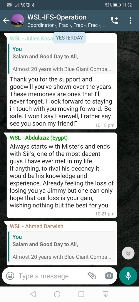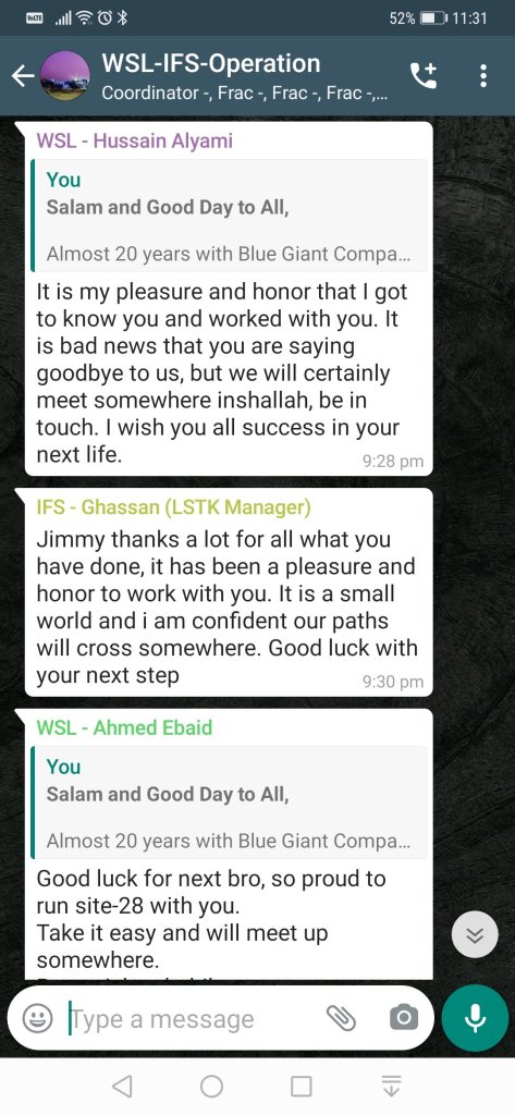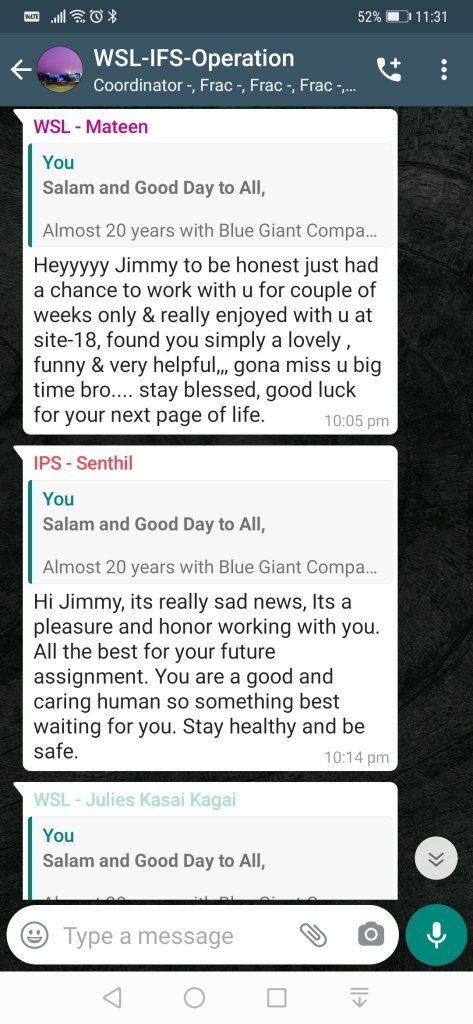 Selama hampir 20 tahun di dalam industri Oil and Gas dan pernah bertugas di 8 buah negara, terlalu banyak perkara pahit manis untuk dikenang dan semuanya ini merupakan azimat kekuatan untuk saya melangkah lebih jauh ke hadapan.